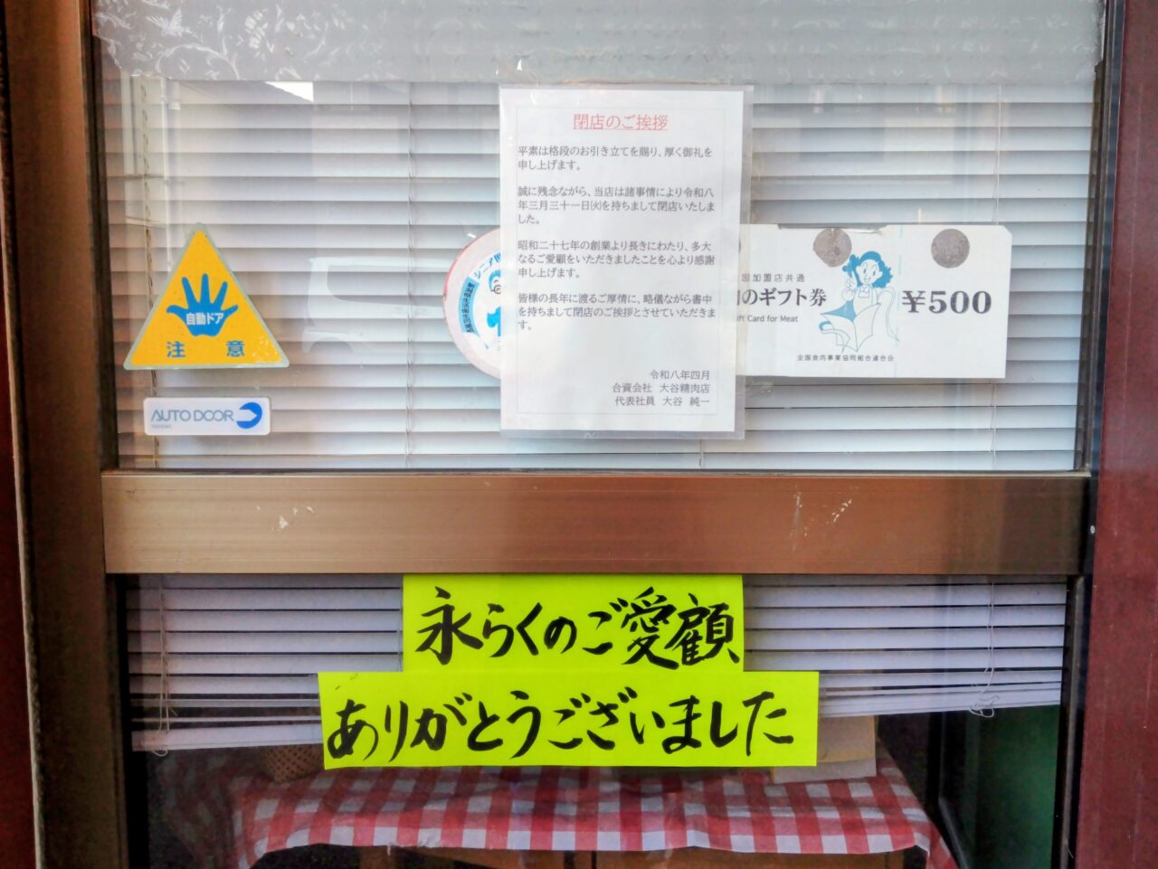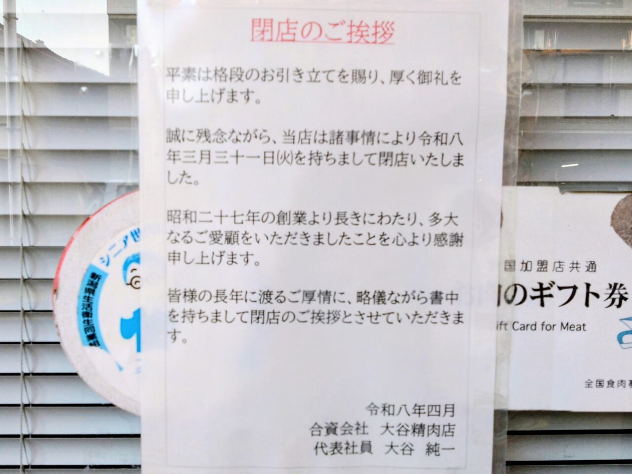 【長岡市】昭和27年の創業から地域の方々に愛され続けていた「大谷精肉店」が3月31日をもってすでに閉店していました。