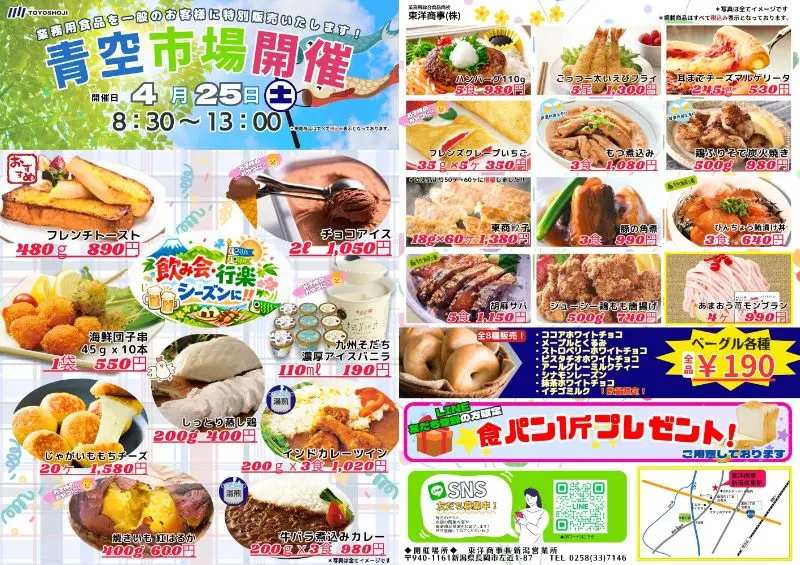 【長岡市】4月25日に業務用食品が誰でも買える「青空市場」開催。フレンチトーストや2リットルと大容量のアイスも登場!
